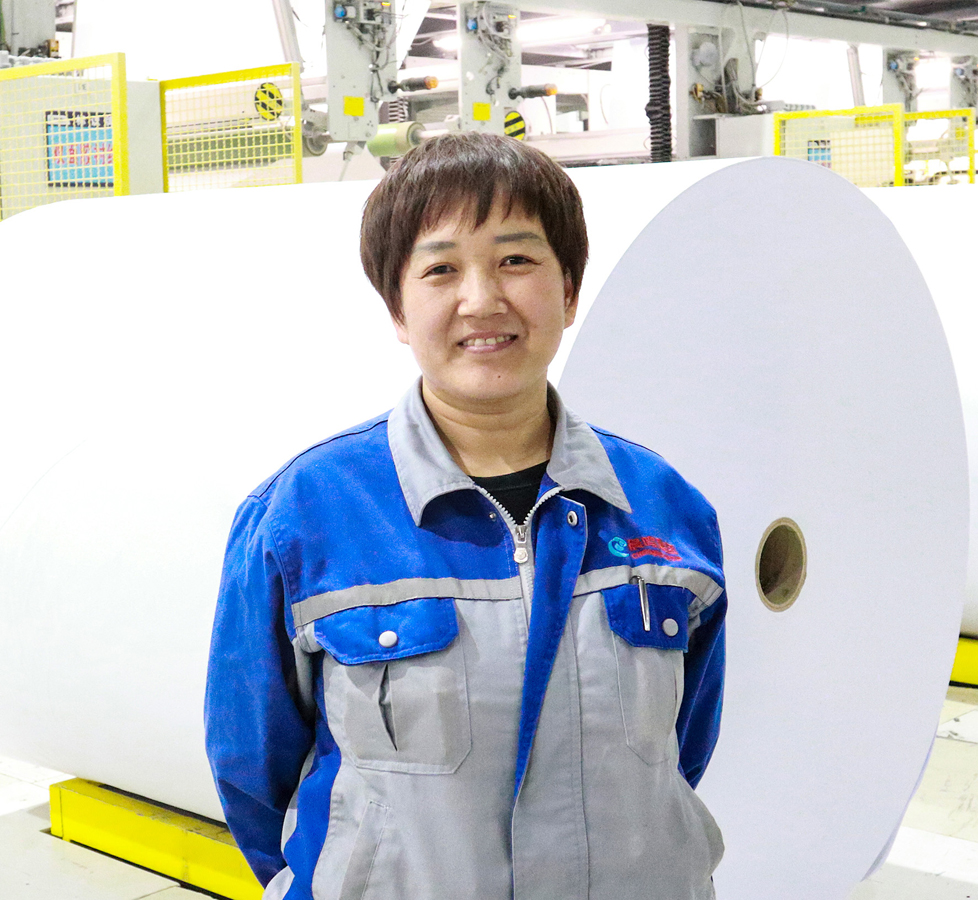 2018年正值靜電紙車(chē)間開(kāi)工建設(shè),朱翠萍被調(diào)到九廠做廠助,分管靜電紙車(chē)間,從設(shè)備安裝調(diào)試 到人員培訓(xùn),以及后期自動(dòng)化倉(cāng)庫(kù)的建設(shè),處處都有她的身影。