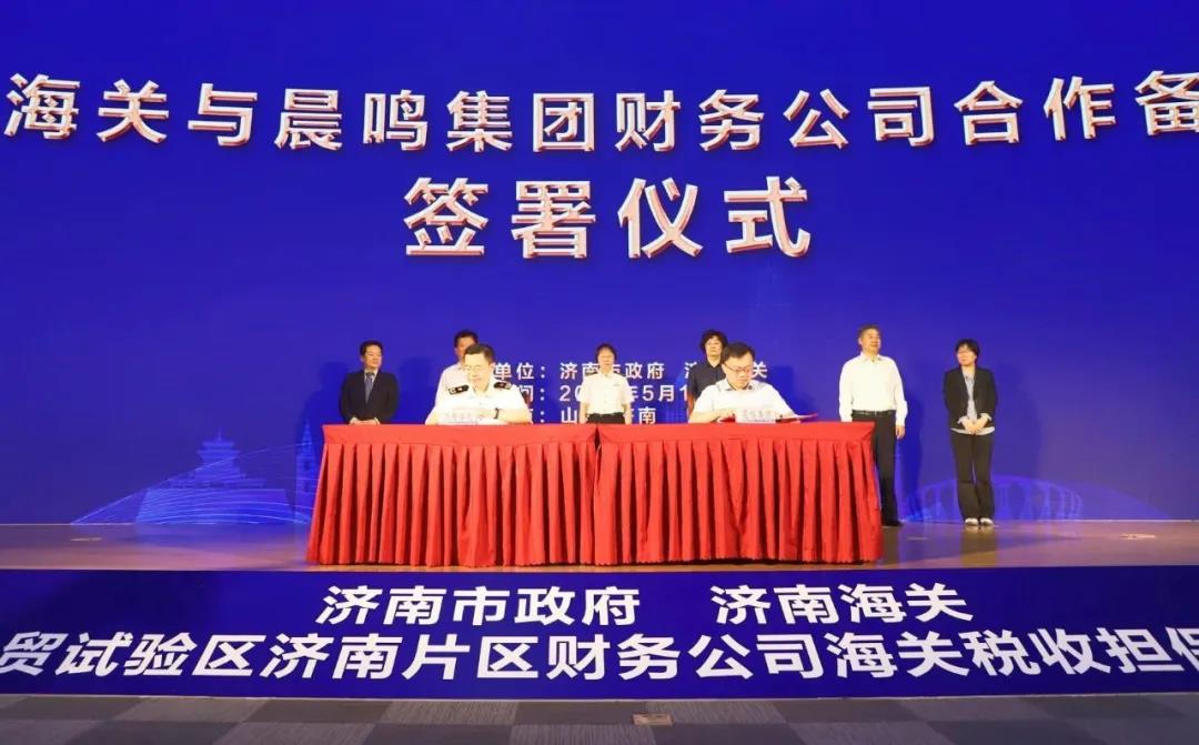 5月19日,濟(jì)南市政府、濟(jì)南海關(guān)支持山東自貿(mào)試驗(yàn)區(qū)(濟(jì)南片區(qū))財(cái)務(wù)公司海關(guān)稅收擔(dān)保啟動(dòng)儀式在浪潮科技園隆重舉行。會(huì)議由濟(jì)南市政府辦公廳黨組成員楊傳軍主持。會(huì)上,晨鳴紙業(yè)榮獲首批濟(jì)南海關(guān)企業(yè)集團(tuán)財(cái)務(wù)公司試點(diǎn)企業(yè)。財(cái)務(wù)公司董事長(zhǎng)李棟代表晨鳴集團(tuán)與濟(jì)南海關(guān)簽署《濟(jì)南海關(guān) 山東晨鳴集團(tuán)財(cái)務(wù)有限公司關(guān)于參與稅收擔(dān)保改革試點(diǎn)助力濟(jì)南自貿(mào)區(qū)建設(shè)合作備忘錄》,晨鳴集團(tuán)總裁助理李康作為企業(yè)代表共同拍啟“企財(cái)?!甭涞刈再Q(mào)區(qū)的啟動(dòng)球。
